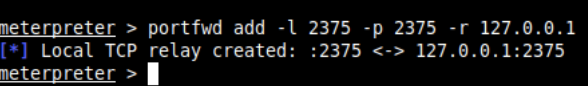 Set up port forwarding from the existing meterpreter session using: portfwd add -l 2375 -p 2375 -r 127.0.0.1: